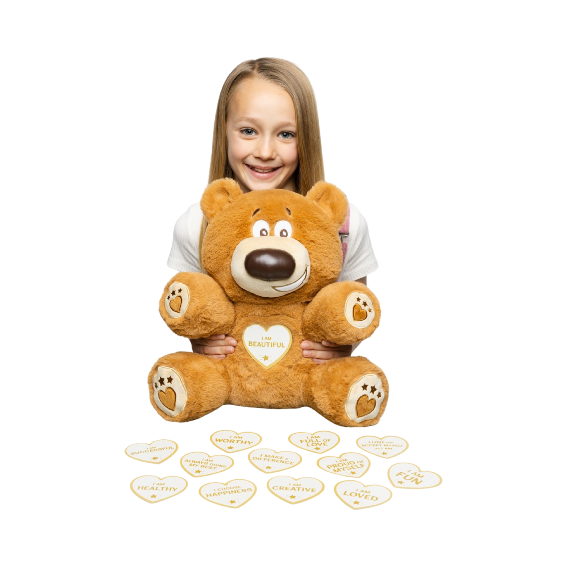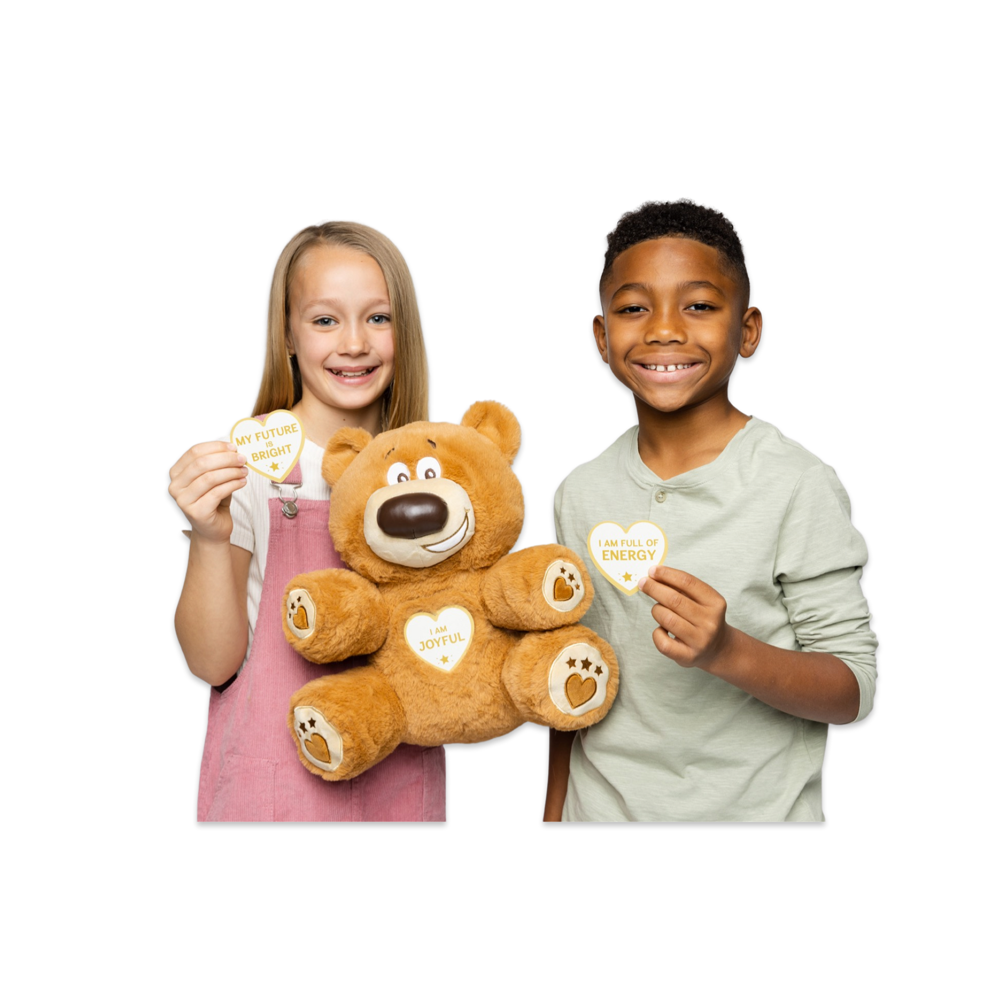 Bring home Winston, a 13-inch soft plush affirmation bear that inspires positivity, confidence, and self-belief in every child.