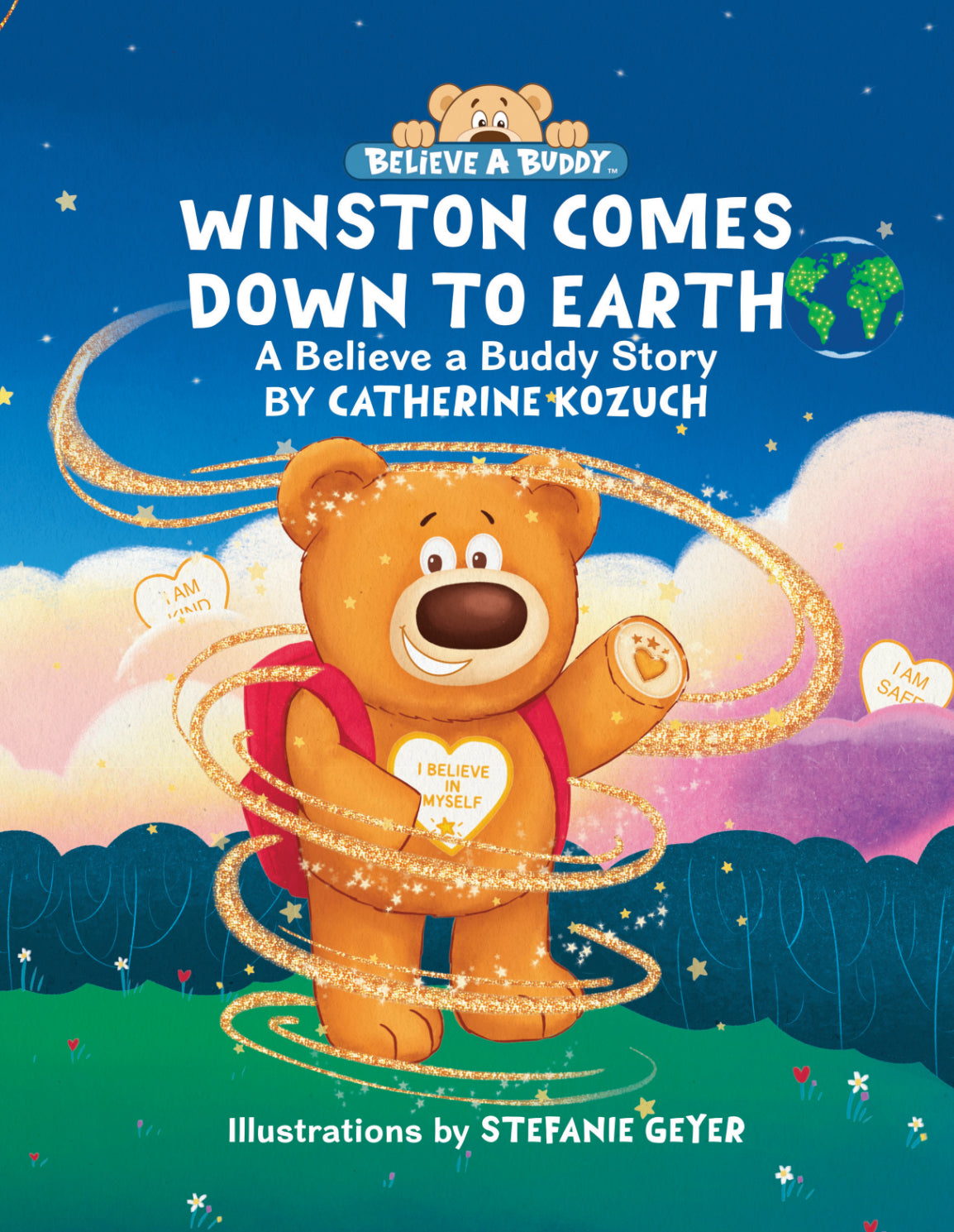 To make the experience even more playful, your child can match their Winston with a pair of teddy bear ears and a “I Believe in Myself” sticker to place on their belly — just like Winston’s own belly affirmation! Kids love becoming Winston’s twin while reading along, cuddling close, and repeating empowering affirmations.